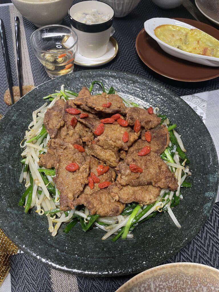 そしてメインのお料理は…ふだん登場回数は少なめだろう、豚レバーは、眼の健康によいトップ食材。