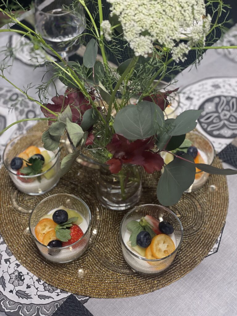 甘味はさっぱりと冬果実と杏仁豆腐。おなじみのブルーベリーも敬意を表して加えました。(笑)